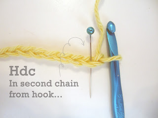 - Row 4: Repeat row 3, 5 times {6 rows of Hdc}